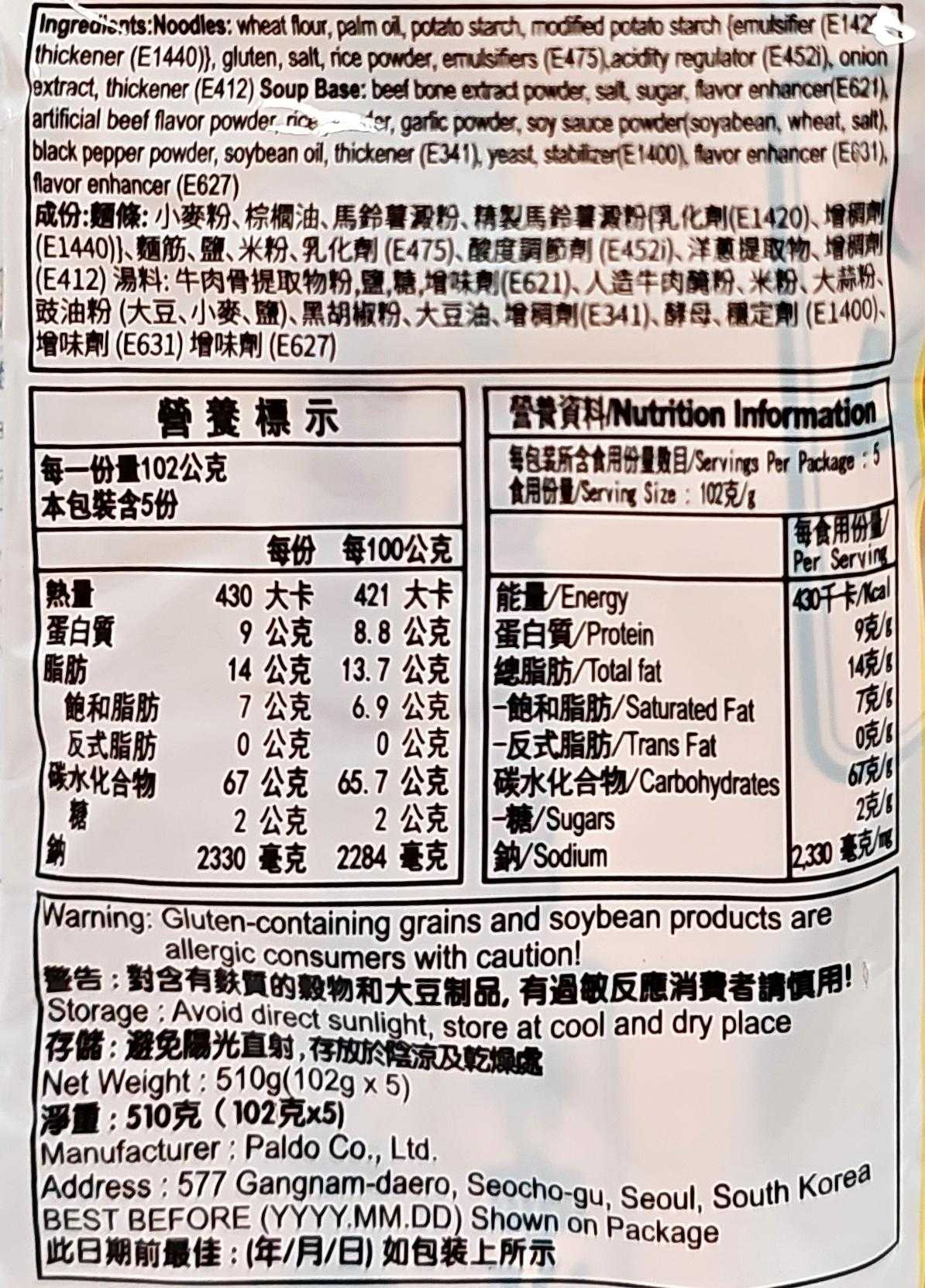 想品嚐道地的韓國風味嗎?這款Paldo八道牛骨湯麵絕對能滿足您的味蕾!每袋包含五包,每包102克的份量,讓您隨時都能輕鬆享用。濃郁的牛骨湯底搭配Q彈有勁的麵條,帶來豐富的口感和層次。無論是快速午餐、宵夜點心,或是露營野餐,都是方便又美味的選擇。現在就來一碗熱騰騰的牛骨湯麵,感受來自韓國的溫暖滋味吧!