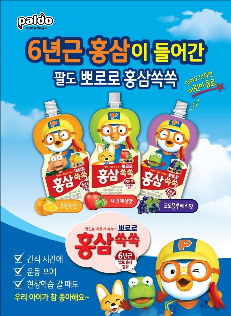 - 八道Pororo聯名紅蔘飲,富含六年根發酵紅蔘精華,補充孩童成長所需營養。
