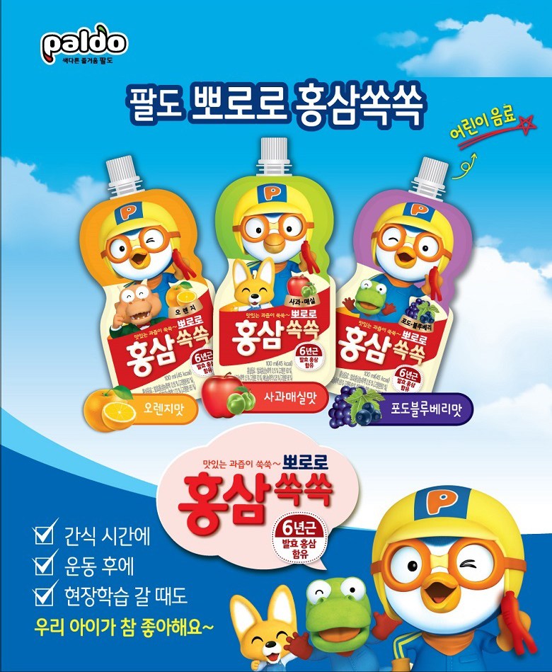 - 八道Pororo紅蔘飲,添加六年根發酵紅蔘精華,幫助孩童健康成長。