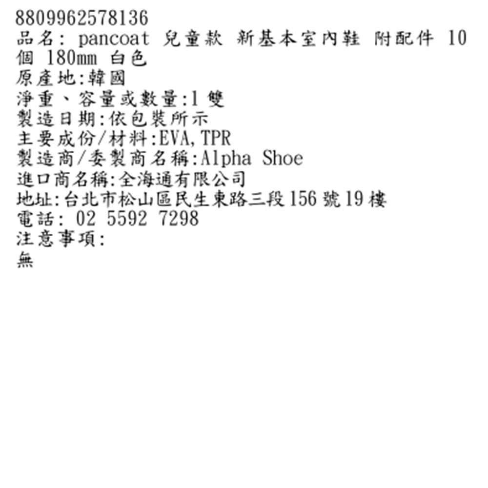 pancoat 兒童款 新基本室內鞋 附配件 10個