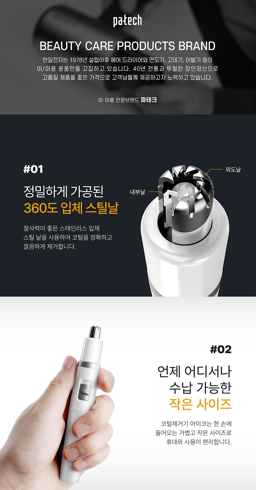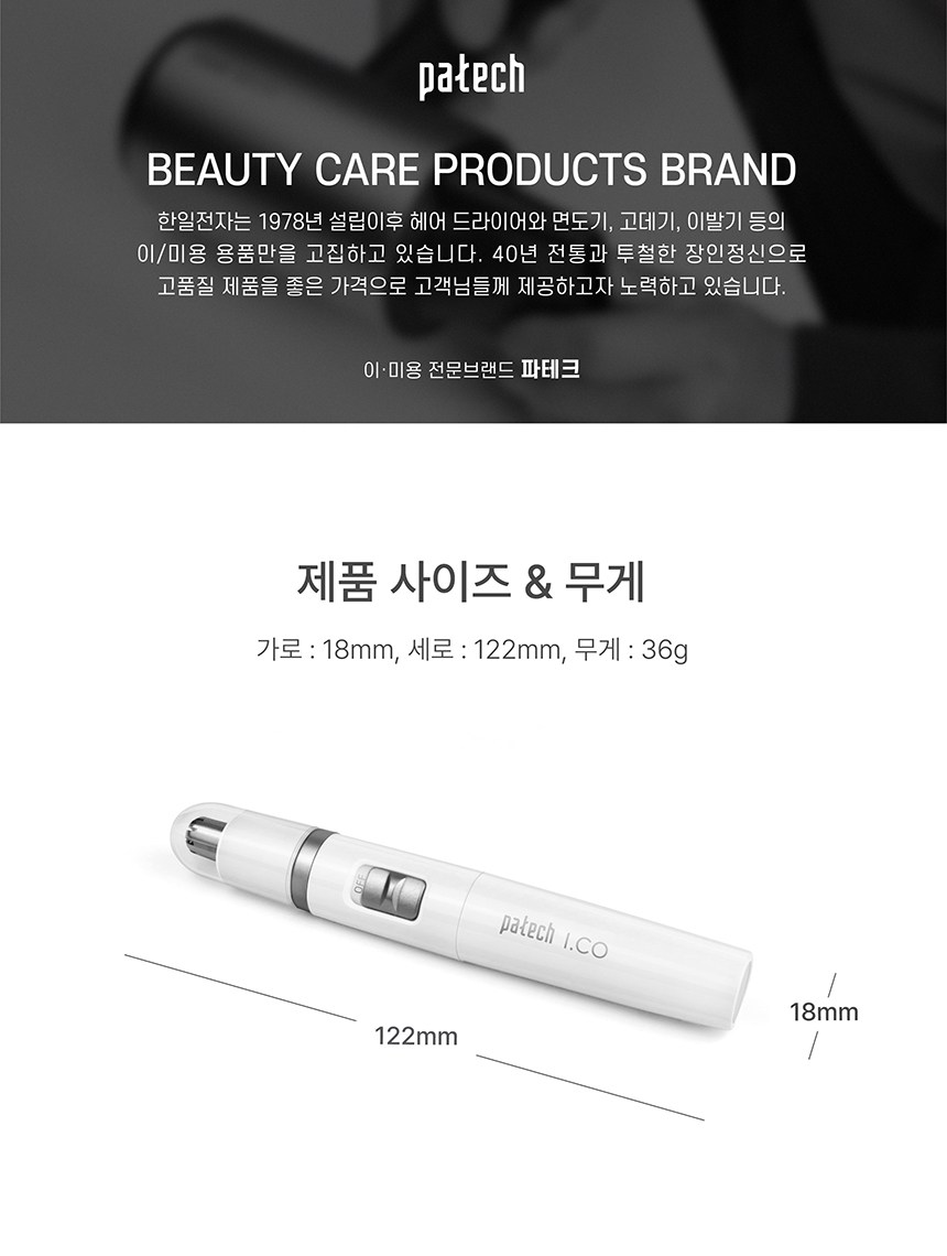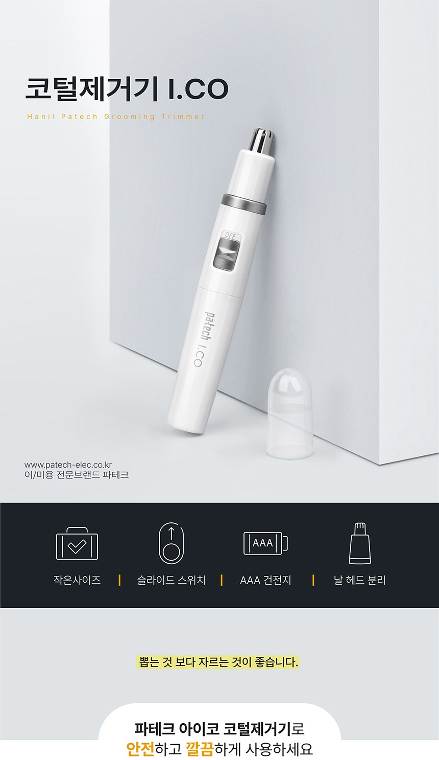 - Patech鼻毛修剪器採用滑動開關設計,操作簡單方便,讓您輕鬆整理儀容。