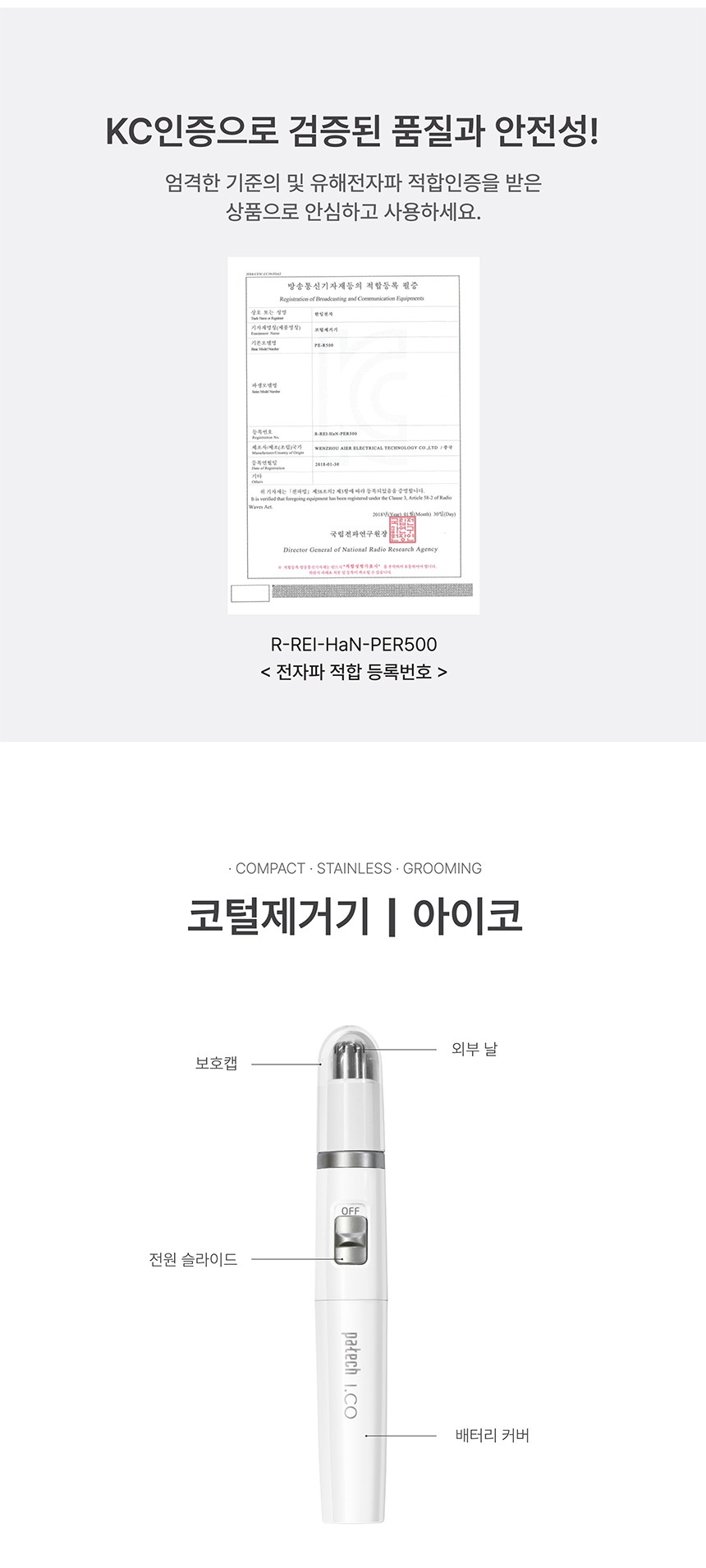 | 產品型號 | patech 愛子鼻毛去除器PE-R500 | 原產地 | 中國 |