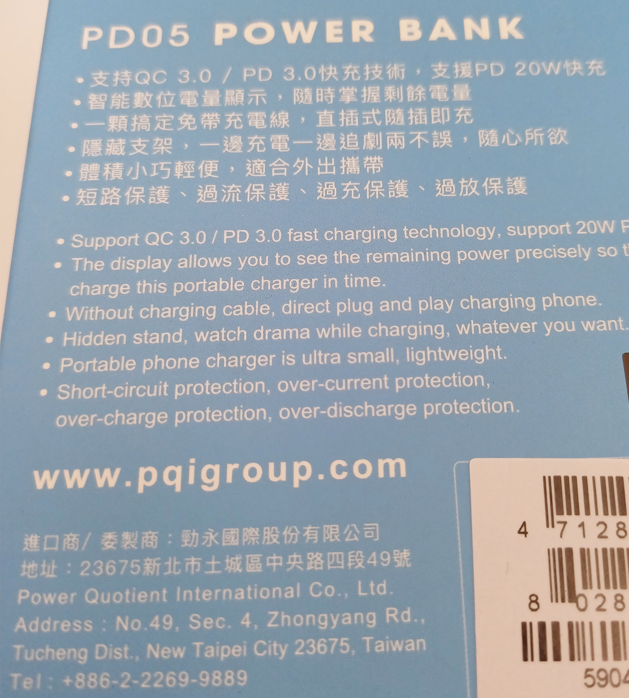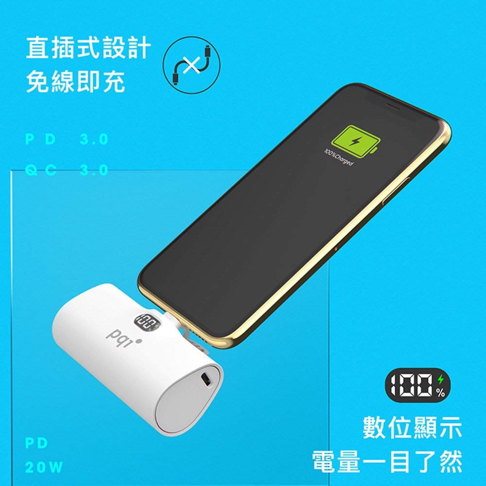 PQI 口袋型隨身行動電源PD05,小巧輕便,僅重102克,粉色外觀時尚可愛,方便隨身攜帶,隨時隨地為您的設備充電。它支援QC 3.0/PD 3.0快充技術,最高可達20W PD快充,讓您的設備迅速恢復電力。內建隱藏式支架,讓您在充電的同時也能輕鬆追劇,解放雙手。數位顯示螢幕能精確顯示剩餘電量,讓您隨時掌握充電時間。此外,讓您安心使用。