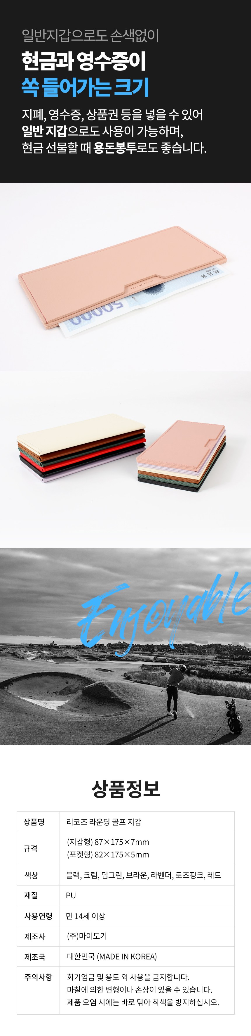recoz圓形高爾夫錢包是一款專為高爾夫球愛好者設計的時尚配件。輕巧纖薄的設計,讓您在球場上輕鬆自如,不再感到負擔。快速便捷的設計,方便您快速支付和接收比賽費用、小鳥球獎金。採用全製程韓國製造,品質安心有保障。共有多種款式和顏色可供選擇,完美符合您的個人喜好。無論是送給巡迴賽成員、朋友,或是自用,都是備受稱讚的禮物。