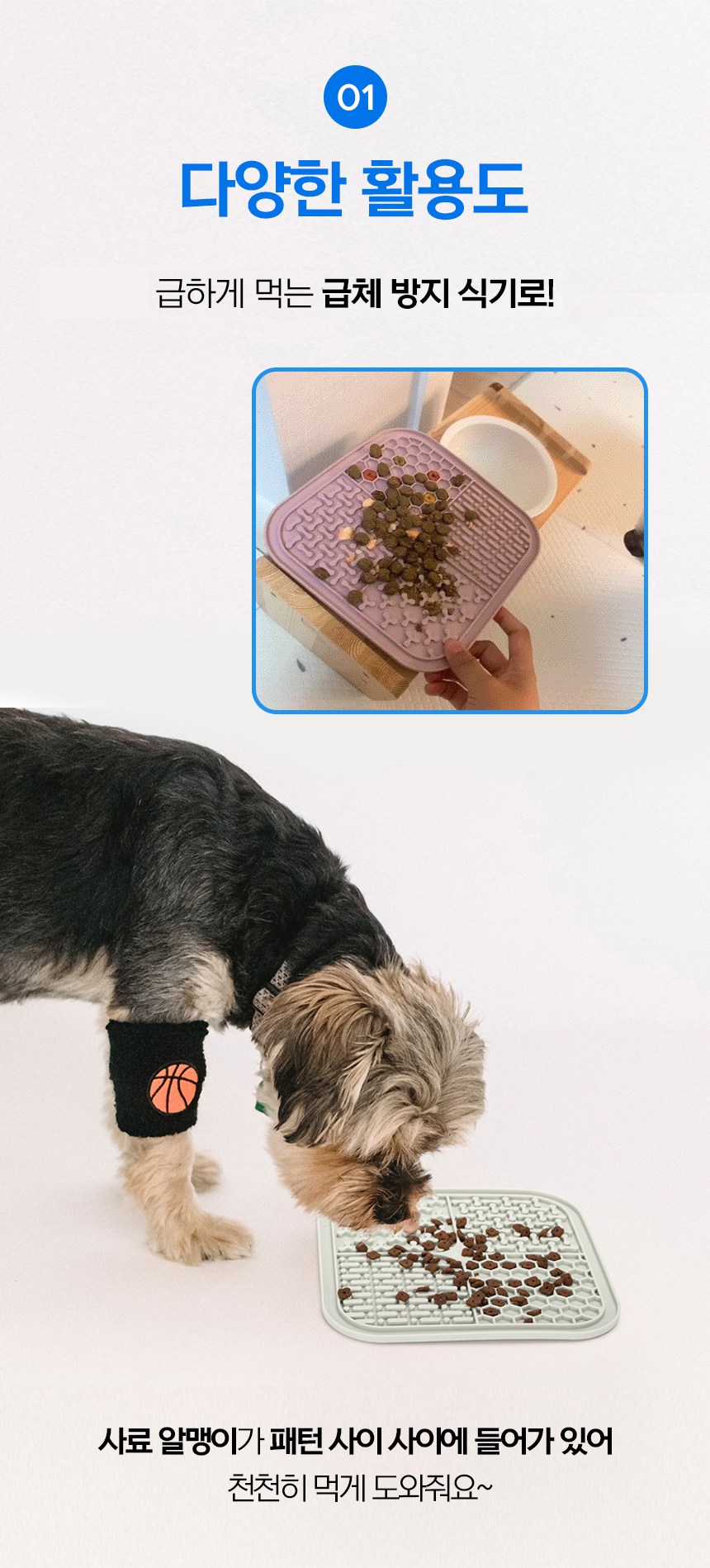 - 矽膠材質的舔食墊,不僅安全無毒,還能耐高溫,方便您使用微波爐或洗碗機進行清潔與消毒。