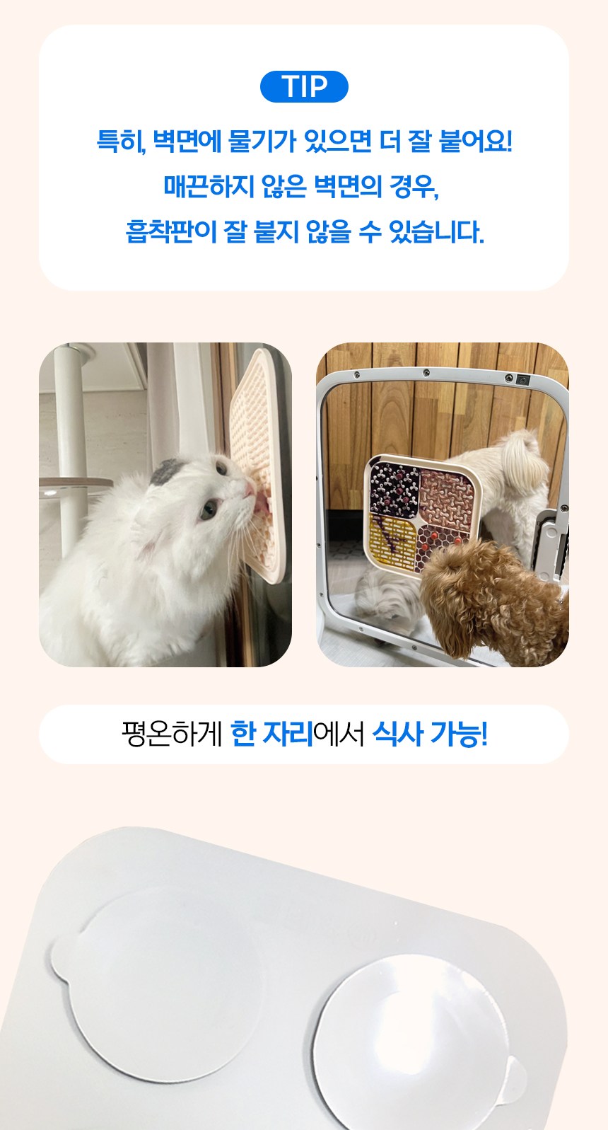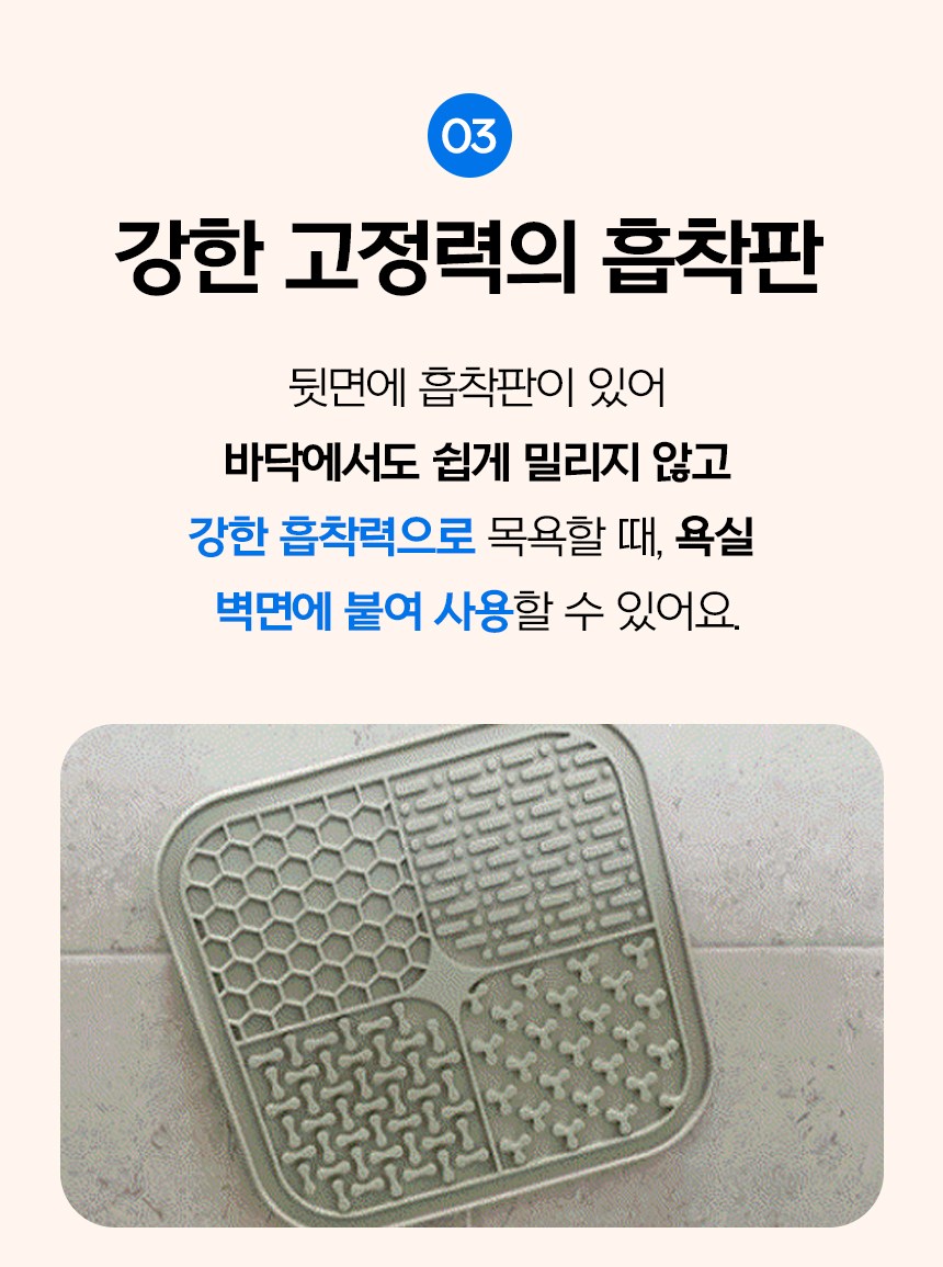 - 底部吸盤設計能牢固吸附於地面或牆面,防止寵物在進食或洗澡時滑動,讓牠們安心享受美食或梳洗。