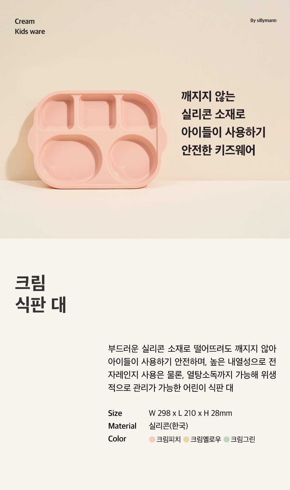 sillymann 孩童鉑金矽膠分格餐盤採用安全矽膠材質,柔軟不易破碎,讓孩子們使用。分格設計能有效分隔不同食物,保持食物的原汁原味,讓寶寶享受更美味的餐點。奶油黃色外觀,增添用餐樂趣,讓孩子愛上吃飯。此款餐盤耐高溫,可用於微波爐加熱,亦可進行熱水消毒,方便衛生管理。貼心把手設計,方便拿取,讓媽媽輕鬆餵食。