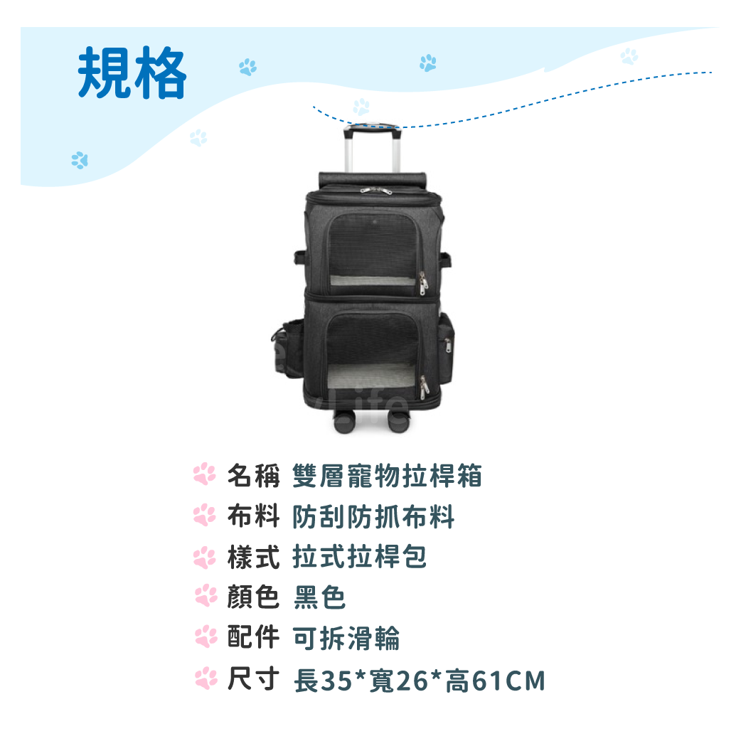 skylife 雙層寵物拉桿箱 35 x 26 x 61cm, 黑色, 1個