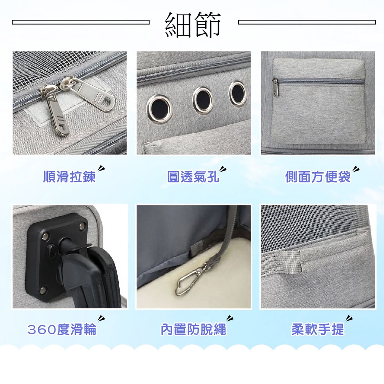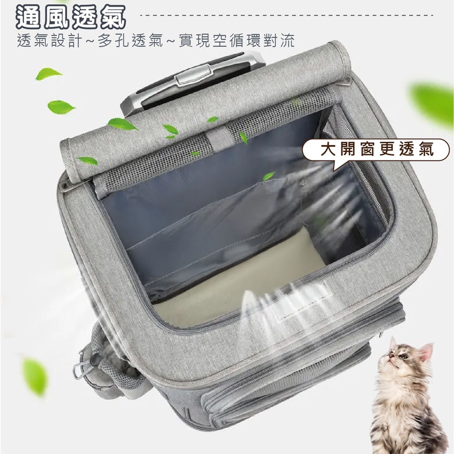 - 透氣網窗設計,確保寵物在拉桿箱內空氣流通,舒適度提升,旅途更愉快。