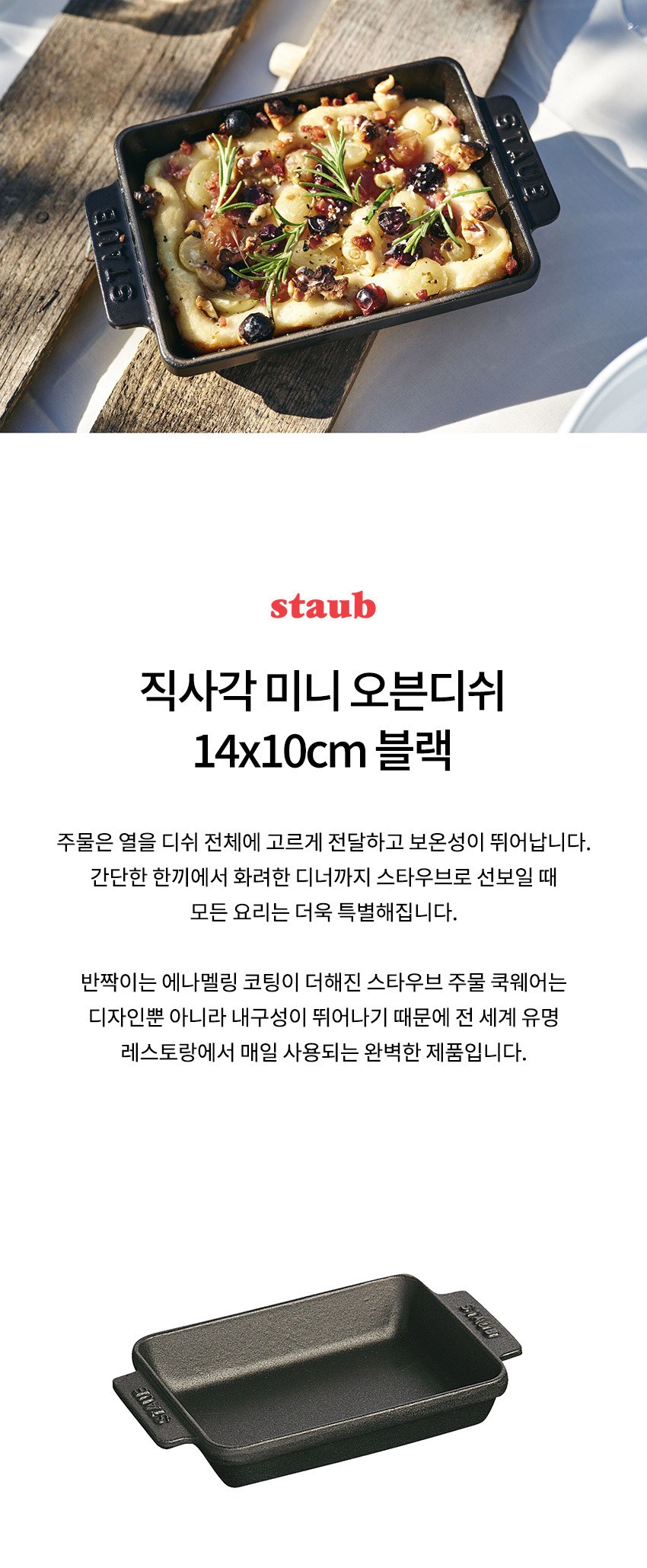 Staub長方形迷你烤盤是您廚房裡的得力助手。這款14*10*3公分的烤盤,採用耐用的鑄鐵材質,能均勻導熱,確保食材完美受熱。無論是製作焗烤料理、烘烤小點心,或是直接將美味佳餚端上餐桌,它都能輕鬆勝任。小巧的尺寸設計,非常適合單人或小家庭使用,讓您隨時享受烹飪的樂趣。黑色霧面琺瑯塗層不僅美觀,也易於清潔,是您廚房中不可或缺的實用器皿。
