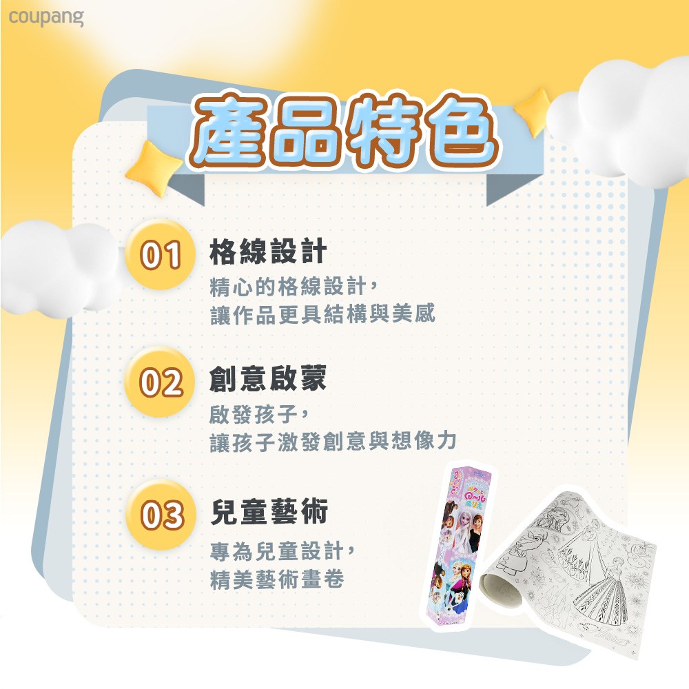 讓孩子們沉浸在《冰雪奇緣》的魔法世界中!這款237公分長的著色畫軸,提供了一個巨大的畫布,讓孩子們可以盡情揮灑創意,為艾莎、安娜和奧拉夫等角色塗上繽紛色彩。長方形的畫布型態,方便孩子們展開平放,或是掛在牆上共同創作。這不僅是一款有趣的著色玩具,更能激發孩子們的藝術天賦和想像力,培養他們的色彩感知和手眼協調能力。讓孩子們在塗色的過程中,重溫《冰雪奇緣》的經典場景,創造屬於他們獨一無二的冰雪世界!