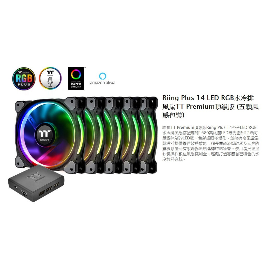thermaltake 曜越 Riing Plus 14 LED RGB 水冷排風扇 TT Premium頂級版(五顆風扇包裝), TT-1225, 1組