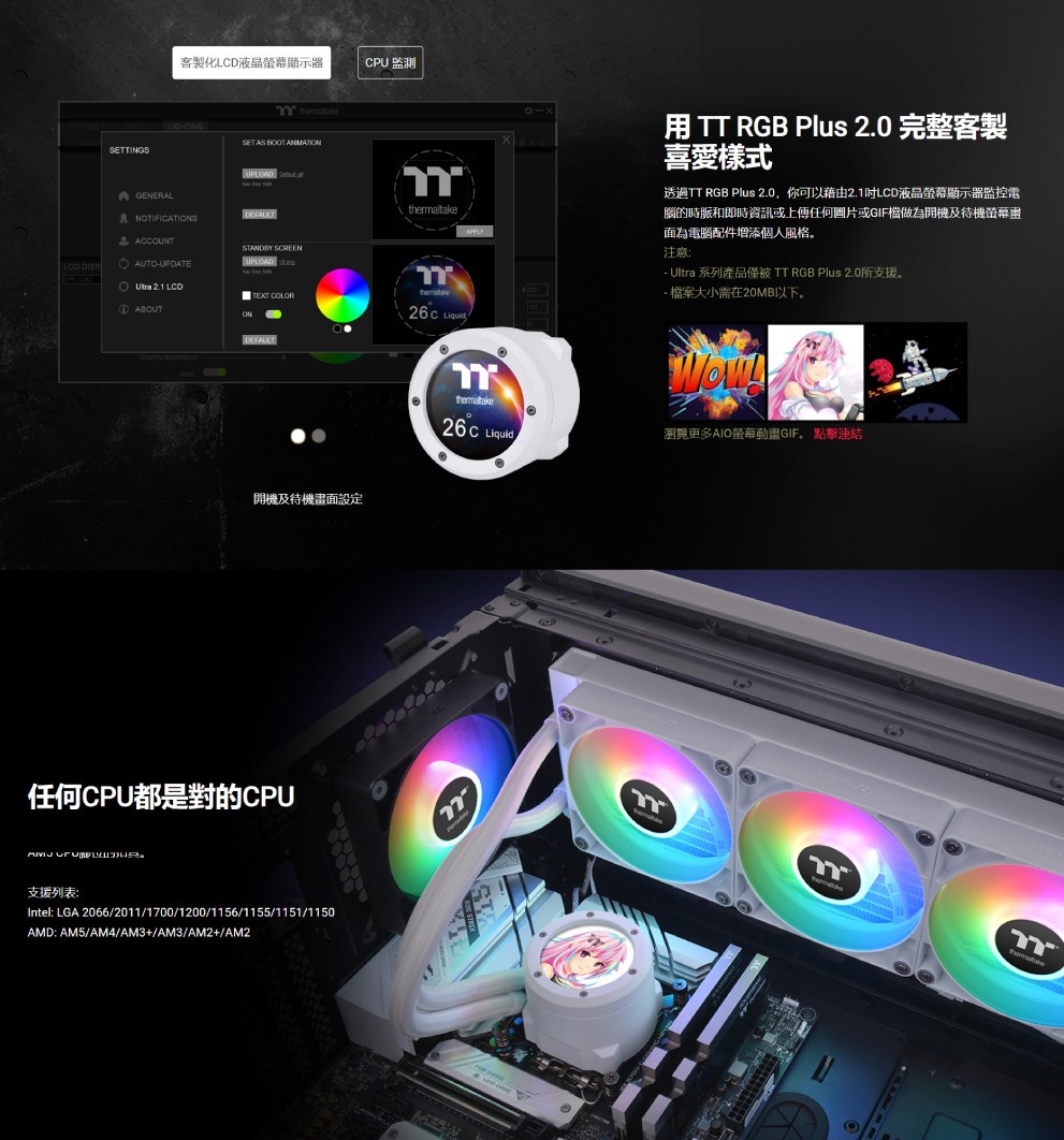Thermaltake 曜越 TH420 V2 Ultra ARGB Sync 主板連動 2.1吋液晶冷頭, CL-W407-PL14SW-A, 白色, 1個