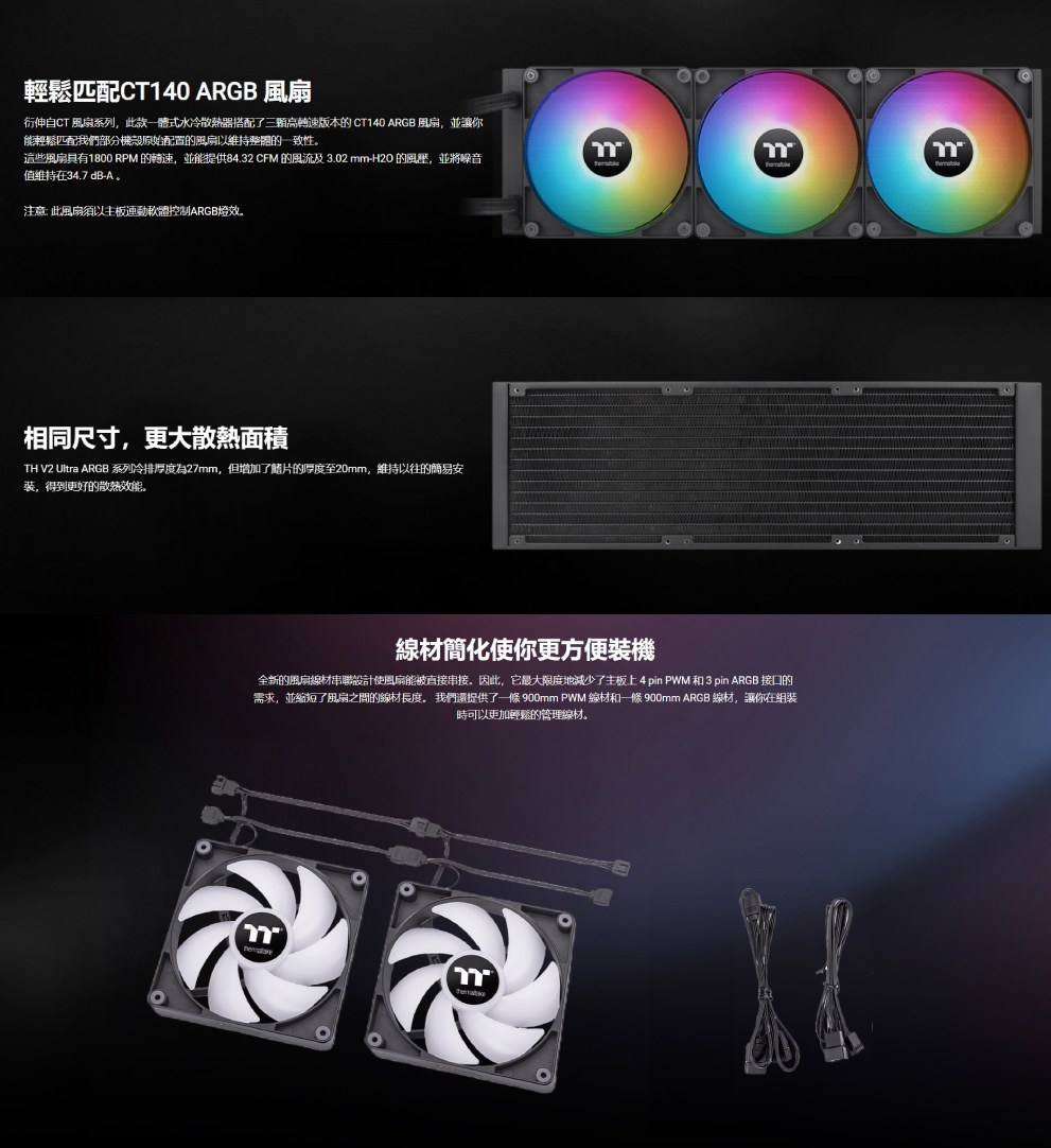 - 曜越TH420 V2水冷,輕鬆同步主機板燈效,打造個人化炫彩視覺饗宴。