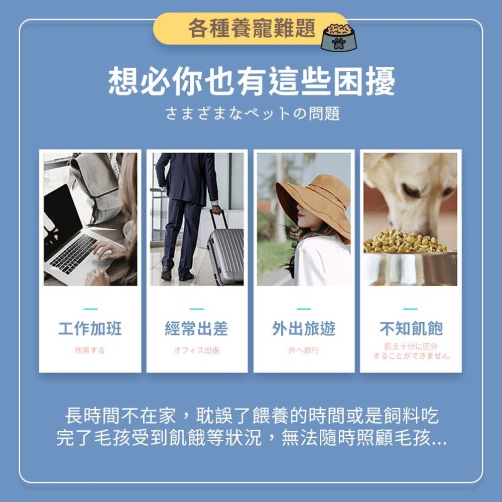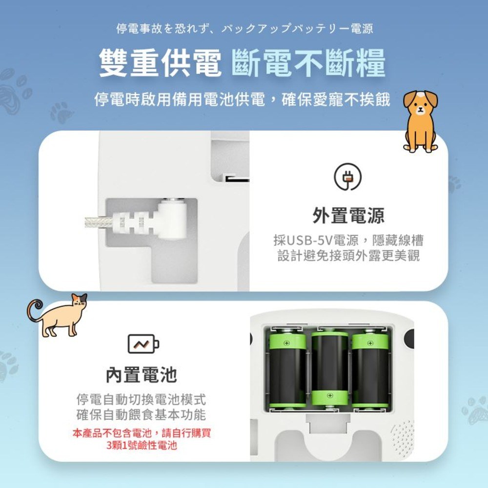 u-ta WIFI視訊寵物自動餵食機PW3,讓您在外也能隨時關愛毛孩。透過視訊功能,您可以隨時掌握寵物的進食狀況,給予牠們滿滿的關懷。4公升大容量儲糧桶,減少頻繁補充飼料的麻煩,讓您即使工作繁忙,也能確保寵物隨時有足夠的食物。APP遠端操控,輕鬆設定餵食計畫,無論身在何處,都能準時定量餵食,讓寵物養成良好的飲食習慣。雙重供電系統,停電時自動切換電池供電,確保餵食不間斷,讓您無後顧之憂。