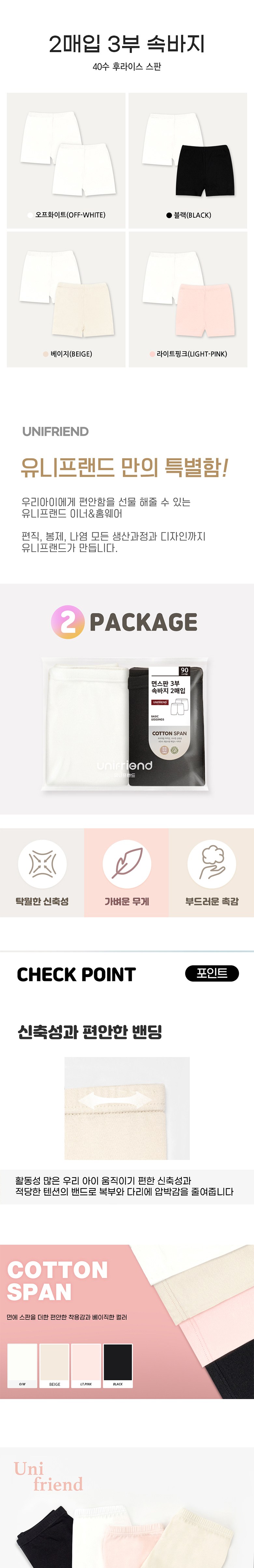unifriend兒童款基本棉質彈性三分內褲二件組,採用觸感柔軟的棉質彈性纖維布料,給孩子們帶來舒適的穿著體驗。這款內褲彈性極佳,方便活動量大的孩子們活動,鬆緊適中的褲頭可減少腹部與腿部的壓迫感。簡約的灰白色系設計,易於搭配各種服裝。使用KC認證布料,讓家長安心。建議單獨洗滌,深色衣物有掉色的可能,請務必分開洗滌。