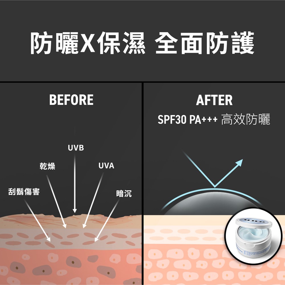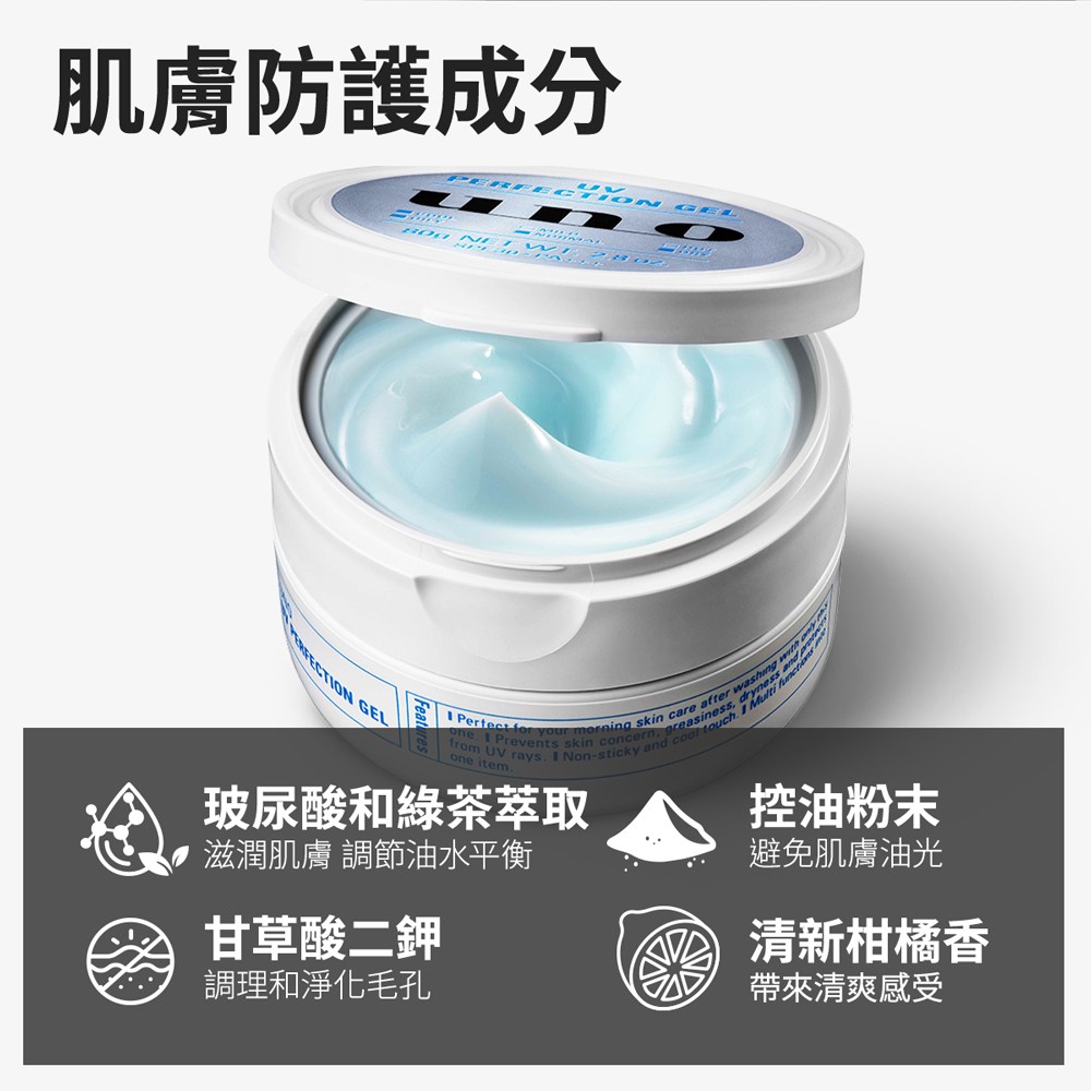 UNO 完效男人抗UV醒膚凍,是專為現代男性設計的多功能保養品。這款醒膚凍結合了保濕、控油與防曬三重功效,一次解決肌膚乾燥、油光和紫外線侵害等問題。其獨特配方含有玻尿酸和綠茶萃取,能深層滋潤肌膚,調節水油平衡,讓肌膚保持清爽舒適。此外,SPF30 PA+++的防曬係數,有效阻擋UVA和UVB。質地清爽不黏膩,散發淡淡柑橘香,為您帶來全天候的清爽醒膚體驗。