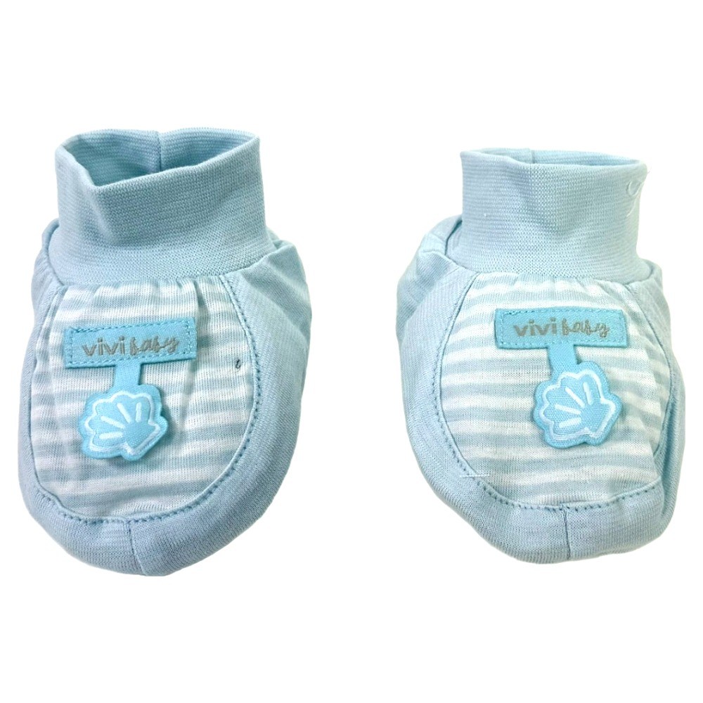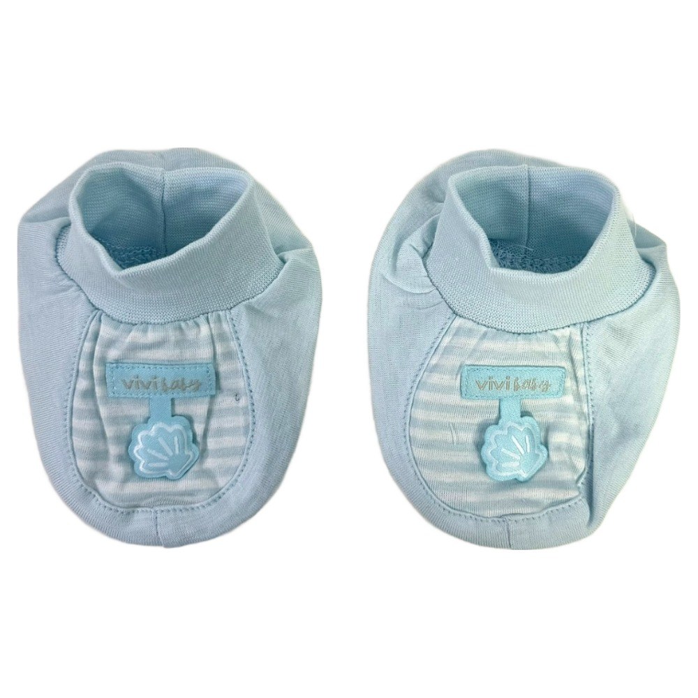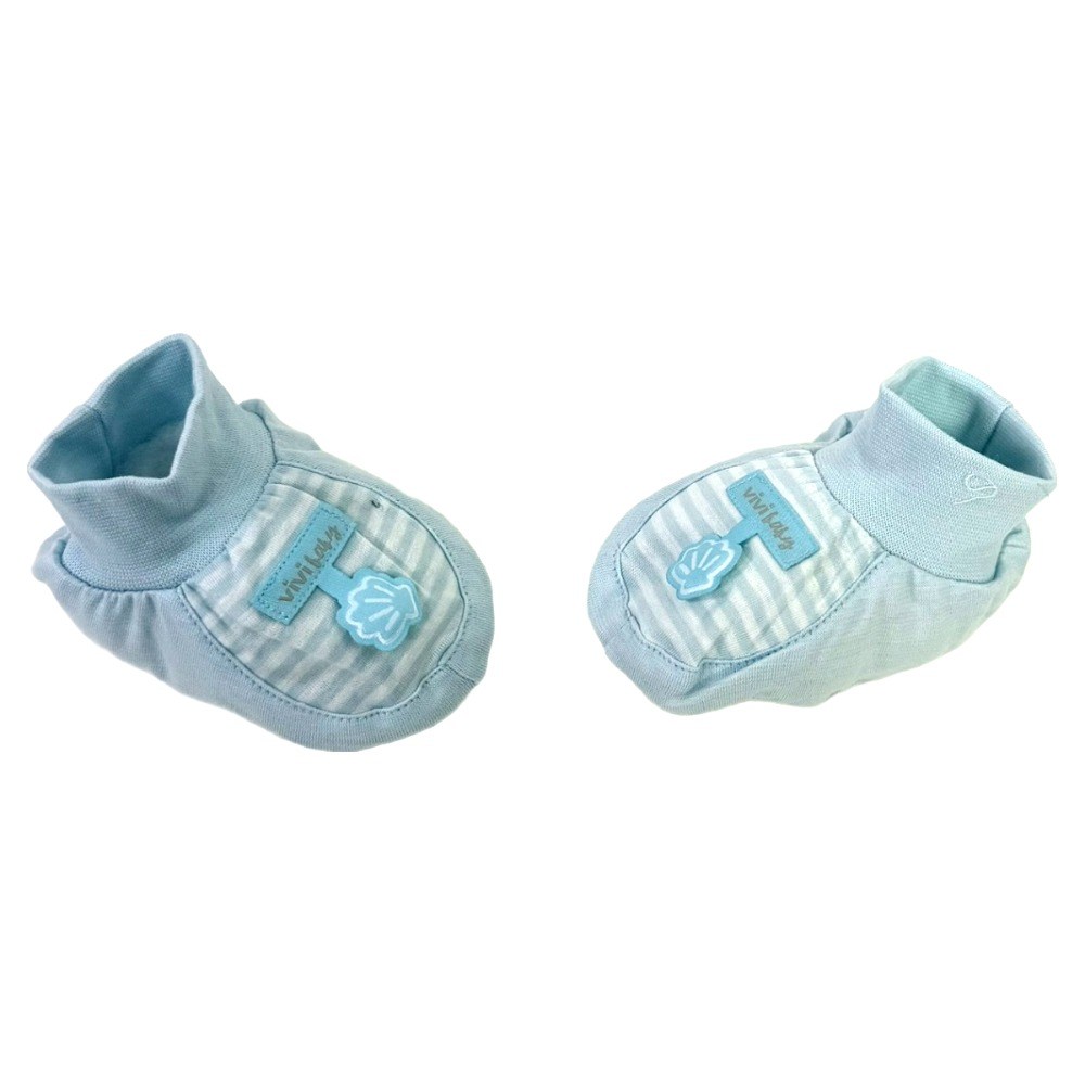 vivibaby 條條腳套,採用柔軟親膚的100%棉材質,溫柔呵護寶寶嬌嫩的肌膚。淡藍色條紋設計,搭配可愛的小貝殼裝飾,簡約又時尚。腳套具有良好的保暖效果,呵護寶寶的健康。台灣製造,品質安心可靠,是寶寶必備的保暖配件。