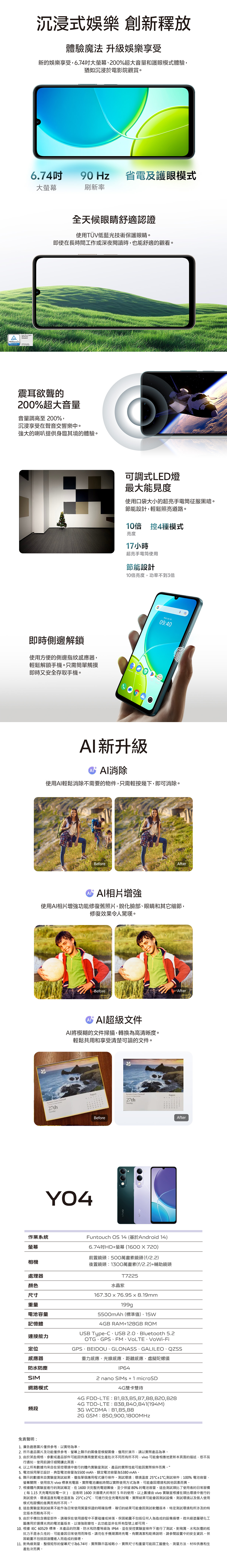 - 6.74吋大螢幕提供沉浸式視覺體驗,讓您享受更寬廣的視野,無論觀看影片或玩遊戲都更加過癮。
