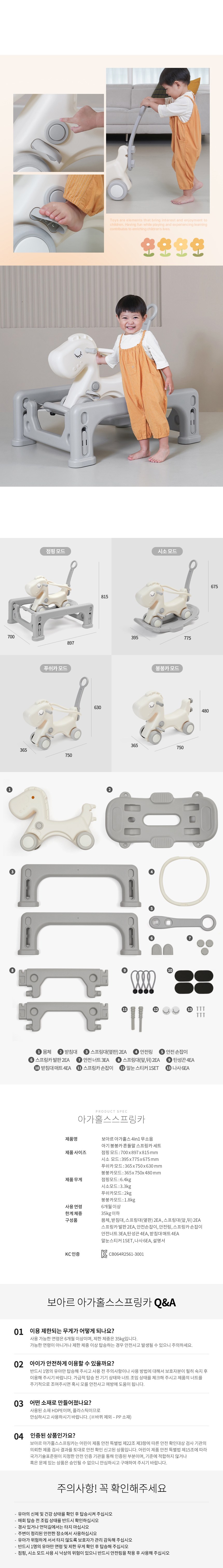 - 彈簧車模式提供寶寶跳躍的樂趣,同時鍛鍊平衡感與協調性,促進健康發展。