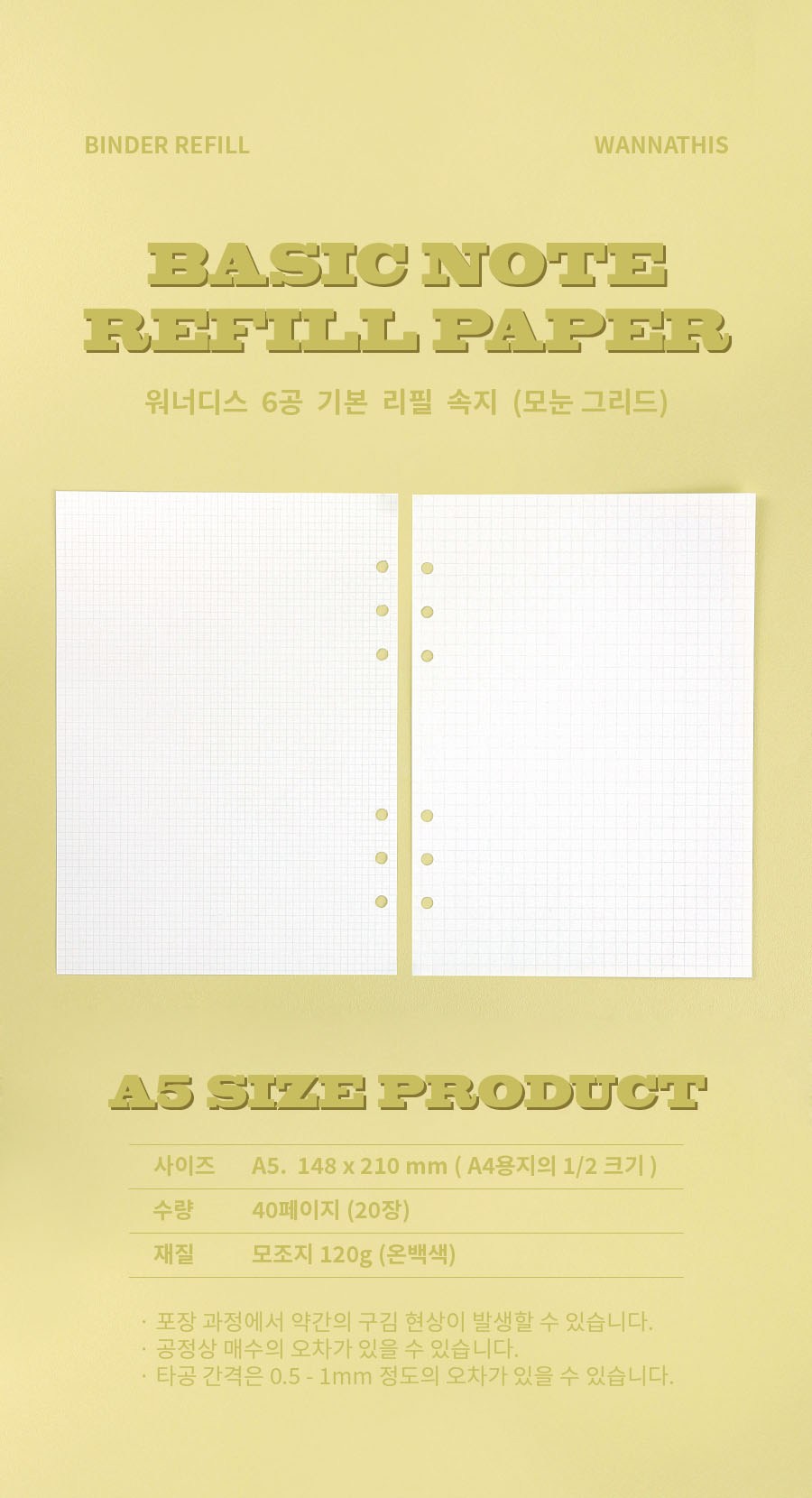 wannathis六孔基本替換內頁方格紙,採用5mm方格設計,提供舒適的書寫體驗,無論是筆記、繪圖或草稿,都能整齊呈現。A5尺寸方便攜帶,隨時記錄生活中的靈感與想法。六孔設計適用於多種活頁夾,可自由搭配,打造專屬的手帳風格。120g模造紙提供良好的書寫觸感,讓每一次書寫都是享受。替換內頁讓您的手帳可以重複使用,環保又經濟。
