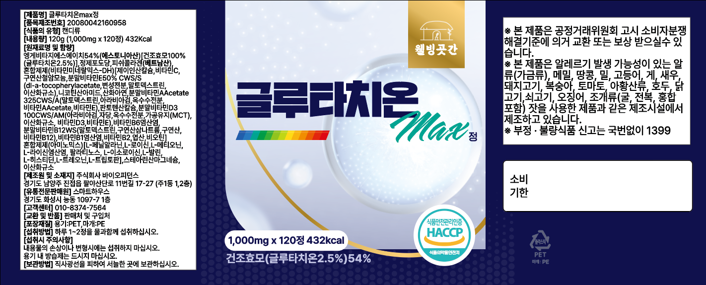 welbinggotgan 穀胱甘肽Max錠,每錠含有1000毫克高濃度穀胱甘肽,能有效幫助您維持青春美麗。本產品特別添加多種維生素,提供更全面的營養支持,讓您由內而外散發健康光彩。每日只需1-2錠,搭配開水服用,簡單方便。本產品經過HACCP食品安全管理認證,讓您安心食用。無論是忙碌的上班族還是注重健康的您,都是理想的健康補充品。