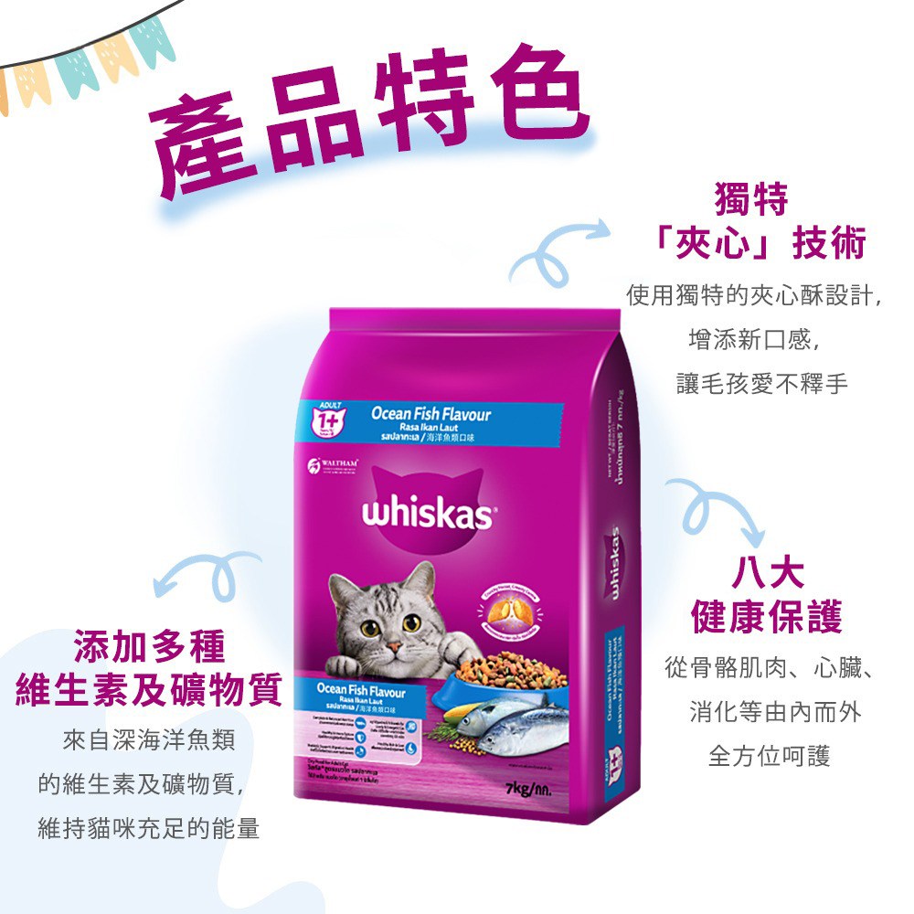 偉嘉成貓乾糧海洋魚口味是專為一歲以上成貓設計的營養均衡主食。這款7公斤裝的乾糧,以美味的海洋魚類為主要原料,提供成貓每日所需的能量和活力。配方中富含多種維生素和礦物質,有助於維持貓咪的骨骼、肌肉、心臟和消化系統健康。偉嘉乾糧由威豪®寵物營養研究中心研發,符合美國飼料管理協會(AAFCO)的營養標準,確保您的愛貓獲得全面均衡的營養,讓牠健康快樂地成長。此外,產品製造過程符合GMP和HACCP安全準則,讓您安心選購。