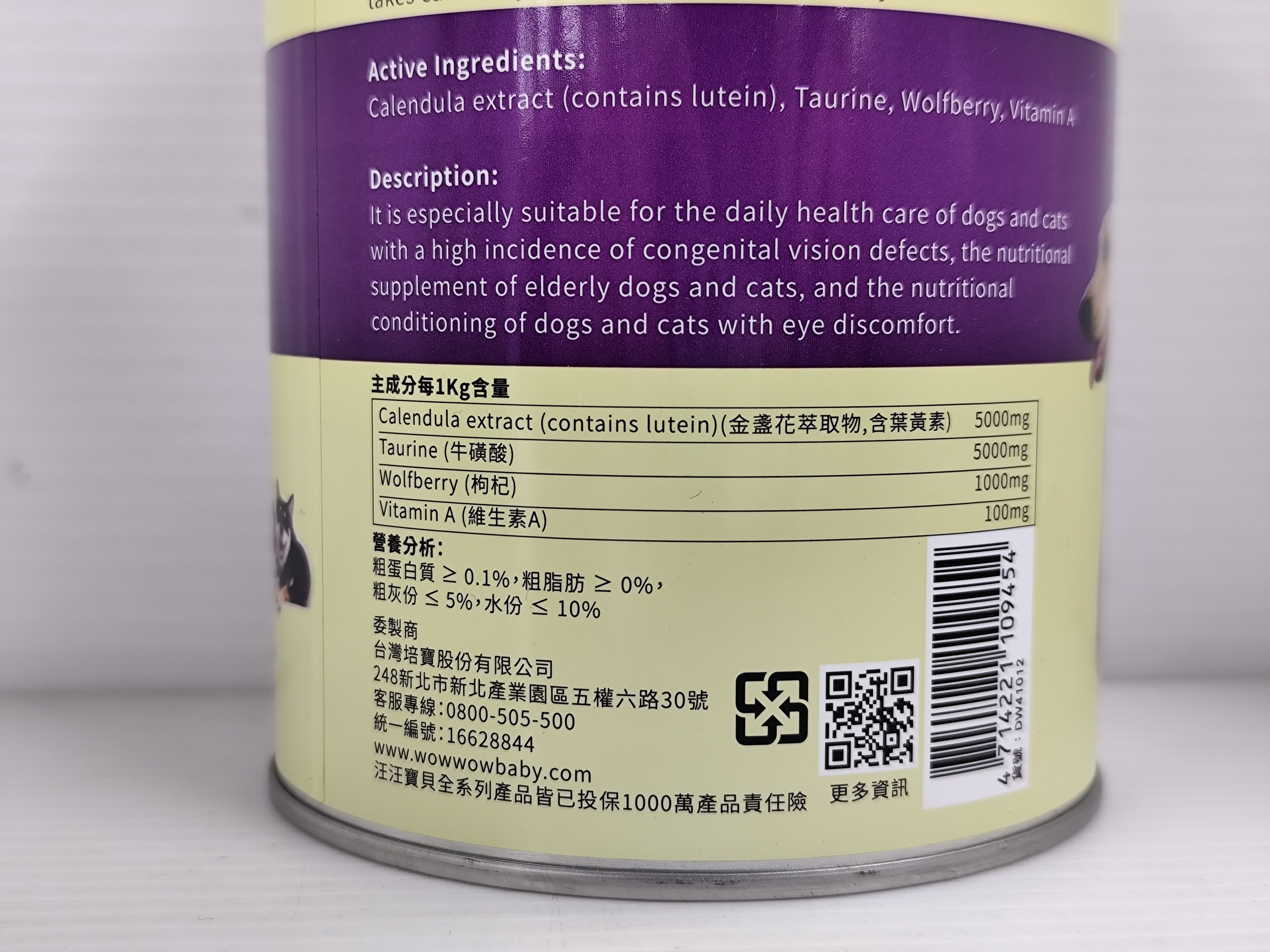 wow wow baby 汪汪寶貝 350g 含金盞花萃取物(含葉黃素)、牛磺酸、枸杞、維生素A, 眼睛晶亮、視力保健, 1罐